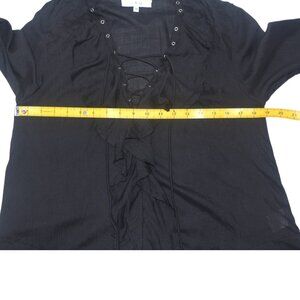 IRO Finley Lace up Front Poet Ruffle Boho Black Blouse 34 XS