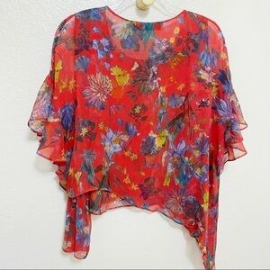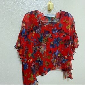 IRO Floral Ruffle Silk Asymmetrical Top sz 36
