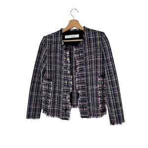 IRO Frannie Blue Tweed Open Front Jacket Size 36 ( Small) S Multicolor