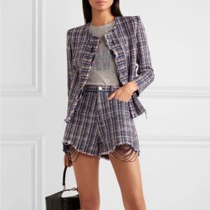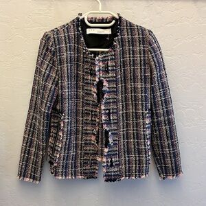 IRO Frannie Tweed Distressed Jacket Blue/Pink -Size 38