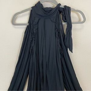 IRO Frejan Bow Neck Cold Shoulder Ruffle Blouse Black NWT Size 36/S