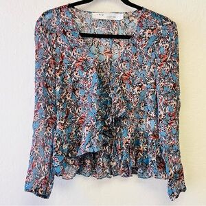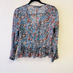 IRO GOSH V-NECK LONG-SLEEVE PEPLUM TOP IN BLUE 36