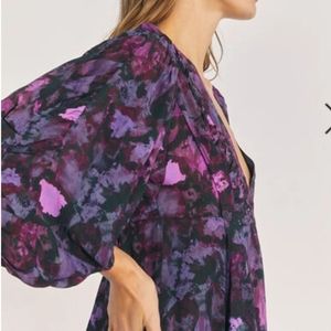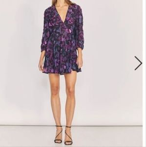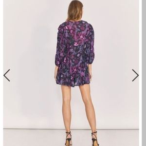 IRO Gaiety Gathered Floral Print Georgette Mini Dress Purple.