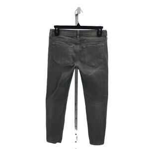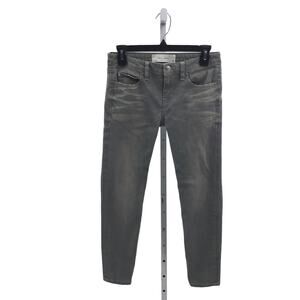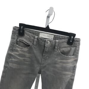 IRO grey skinny jeans. Color name is called nude, jeans are grey with some tan colored whiskering. Whiskering details. Some distressing details. Skinny leg. Cotton, polyester, elastane. Machine wash. In preowned condition.
