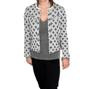 IRO Handi Jacket Blue White Geometric Tweed Women's Size 38 FLAWED PLEASE READ