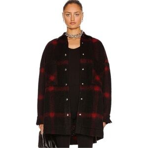 IRO Heldens Jacket Red Black Wool Shacket 34 Fits a US L