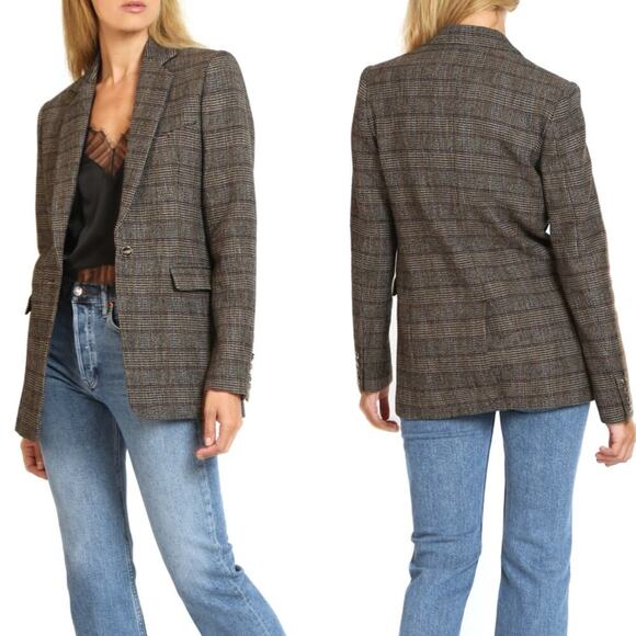 IRO Houli Plaid Tweed Blazer Jacket Brown FR 36 US 4 Oversized Wool Check
