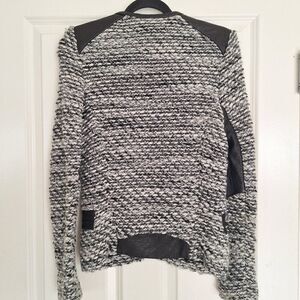 Black and white wool blend with lamb leather details