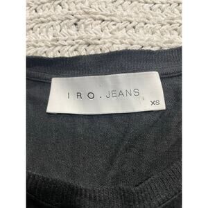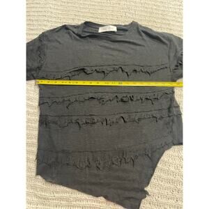 IRO Jeans Asymmetrical Distressed T-Shirt Top Women's Size XS Black Crew Neck
