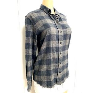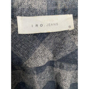 IRO Jeans Shirt Button Gray Plaid Donella Raw Hem Cotton Long Sleeve Roll Tab S