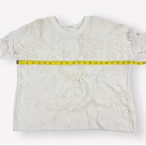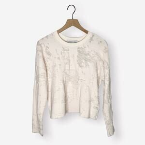 Overall condition is great. On the shoulder, there is a small faint area of discoloration. I am unsure if it's a stain that could be treated or not. It's not super noticeable. Please see the last photo for a closer look. All the distressing is intentional.