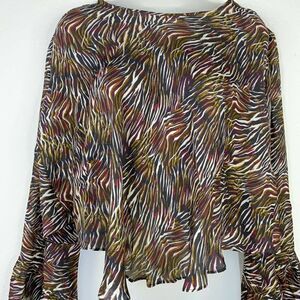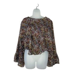 Up for sale is a IRO Jeans Tildana Top Women 34 XS Multicolor Zebra Print Silk Bell Sleeve Blouse