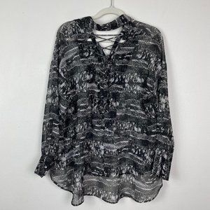 IRO Jeans Woman's Sz 36/4 Black & White Patterned Lace Up Back Semi Sheer Blouse