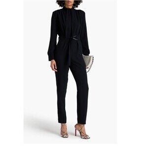 IRO Jumpsuit EUR 34 Small Black Katija Neck Tie Belted Long Sleeve Formal