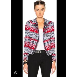 IRO Kroe Red Tweed Tapestry Short Cropped Jacket Small