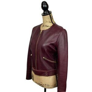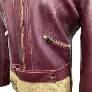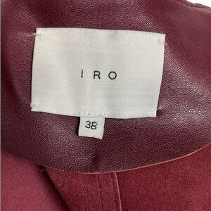 lamb leather jacket, gold hardware, IRO jacket, burgundy jacket, size 38 jacket, women's outerwear, fall fashion, zippered jacket, stylish jacket, women's fashion, chic outerwear, China-made jacket, women's leather jacket