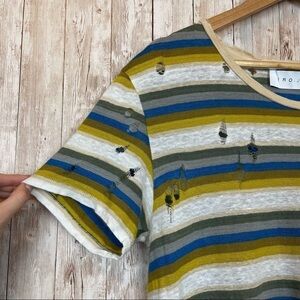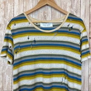 IRO Vania Distressed Striped Linen Short Sleeve Top