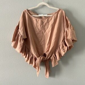 IRO Linn Linen Blend Tie Front Top in Nude