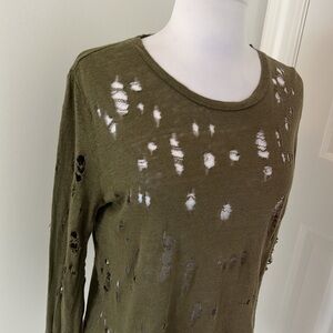 IRO Liza Distressed Linen Long Sleeve Tee Army Green