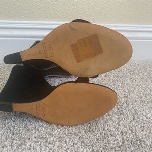 IRO Made In Italy Black Suede and Studded Gunmetal Leather Wedge Heels Sandals Sz 40 (9/ 9-1/2)