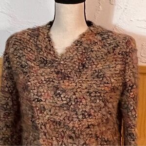 Great blouce jacket with a winged shawl collar open front. It has long sleeves, leather inside trim, peaked hem and a relaxed fit. In excellent pre-worn condition. Approximate measurements lying flat: bust 21” across from pit to pit, sleeve length 25” length 28”.