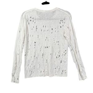 IRO Marvina Linen Distressed Long Sleeve Tee Ivory White Size Small