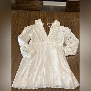 IRO Meila eyelet white cotton mini cold shoulder Longsleeve Mini dress 38 nwt