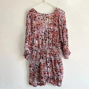 IRO Mercy Playsuit in Multi Floral Jumpsuit Romper Long Sleeve Smocked V Neck M