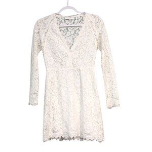 IRO Mini Dress Size 36 Small US 4 Ivory Lace Bridal Long Sleeve Cotton Formal