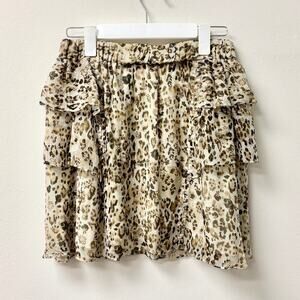 IRO Moody Leopard Print Silk High Rise Ruffled Mini Skirt Ecru Women's 38 / 6