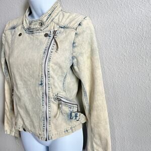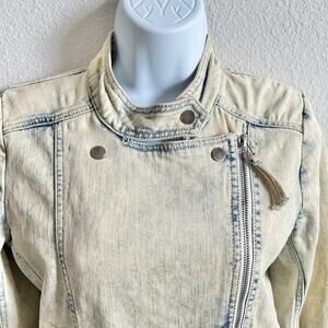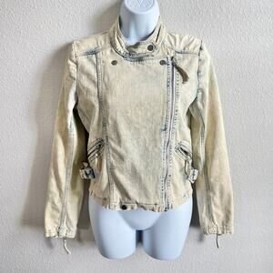 IRO Moto Bleached Acid Wash Denim Jacket Women's XS Pockets Jean Stretch