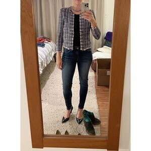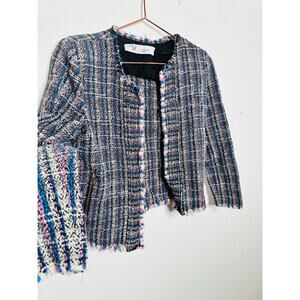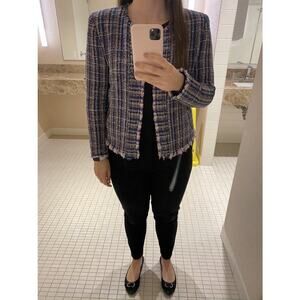 IRO Multicolored Printed Tweed Long Sleeve Frayed Hem Frannie Jacket size 36