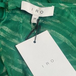 IRO NWT Eolla Emerald Jacquard Metallic Ruffle Midi Dress 38 EU 4-6 US