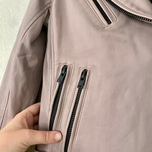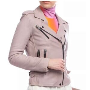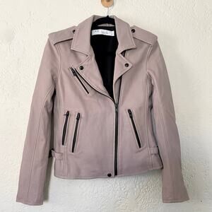 IRO Newhan Han Leather Moto Biker Jacket Dusty Old Pink sz 38