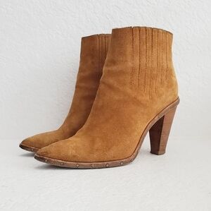 IRO Noliana Bootie Camel. Slight wear on suede and sole. Made to look slightly distressed as seen in the first two stock photo pics. Remaining pics of actual boots for sale.