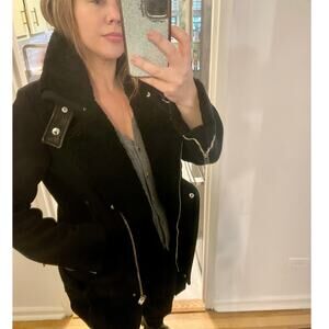 IRO Notting Sherpa Fur Shearling Cotton Jacket Coat Biker Moto Motorcycle sz 34