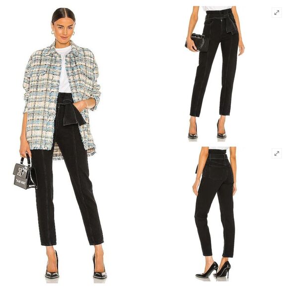 IRO Ouzilly Paperbag Belted Faded Black High Rise Tapered Jeans Sz FR 38 US 26. New with tags.
