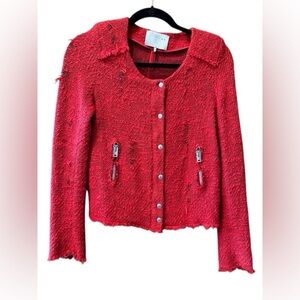 IRO Paris Agnette Women’s Red Tweed Distressed Jacket. Red size 2.