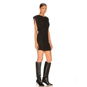 IRO Paris Cory Ruched Cloqué Mini Dress in Black Size 44