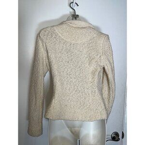 This IRO cardigan jacket, size 38, features a stylish wrap design and boucle texture. Its beige hue and cozy knit make it ideal for layering.
