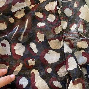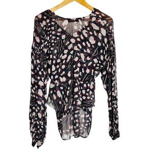 IRO Paris Realize Blouse Abstract Pattern V-Neck Ruffle Sheer 36/US 4 Black Wine