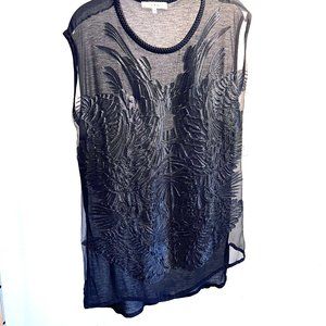 IRO Paris Silk Blend Black Sleeveless Burn Out Wing Patterned Top Sz 38 Medium