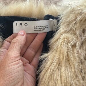 Chic faux fur jacket by IRO. Luxurious texture. Perfect for stylish outings. Hook and eye closure.