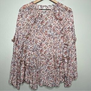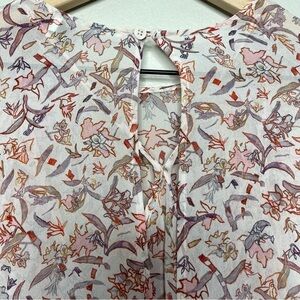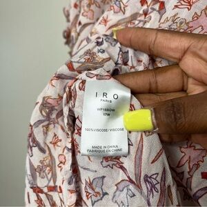 IRO Paris Women Top Medium Chiffon Ruffle Bow Floral White Pink Regency