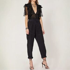 New with tags. IRO Paris Lonila black Georgette’s chiffon semi sheer ruffle blouse. Glitter embellished detail. Ruffled with tie waist. Size 38= US size medium per size chart.