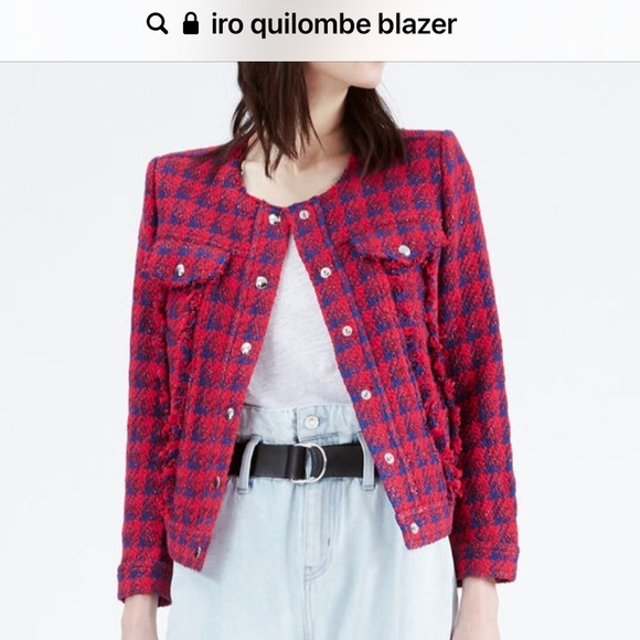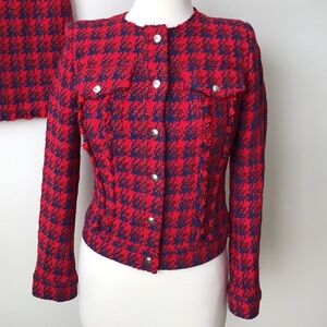 IRO Quilombe Metallic Frayed Tweed Jacket/Blazer Red and Blue Size 34 US 2(XS)