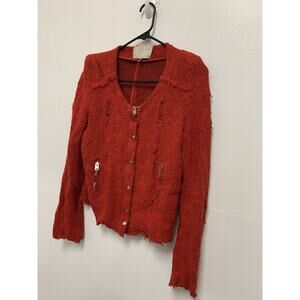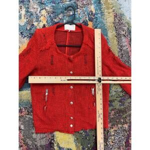 The IRO Red Agnnette Jacket Coat Top in size 3 is a stylish and versatile addition to any woman's wardrobe. Made from a durable cotton blend with a distressed pattern, this classic neckline jacket features a zip and snap closure for added convenience. The bold red color and basic jacket style make it perfect for any occasion, whether it's for a casual outing or a more formal event. With a dry-clean only care instruction, this high-quality IRO jacket is sure to become a staple piece for the winter, summer, and spring seasons.