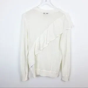 Lightweight ecru sweater with an oversized ruffle "sash" detail.