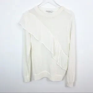 Cozy cotton-blend sweater with asymmetrical ruffle trim