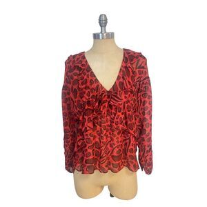 IRO Realize Red Leopard Ruffle Blouse 36 US Small